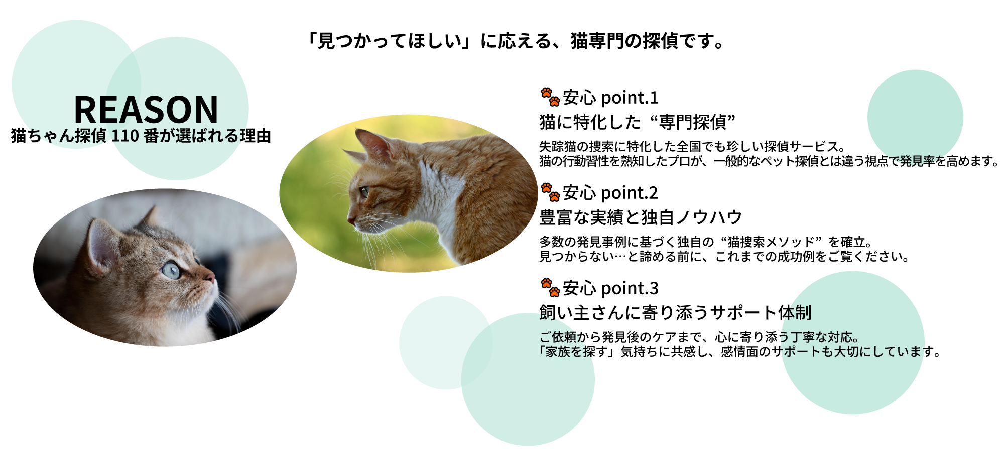 「見つかってほしい」に応える、猫専門の探偵です。