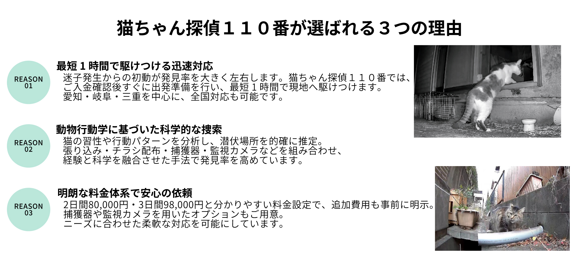猫ちゃん探偵110番REASON 2025-10-192025-11-05 TOPページ選ばれる理由料金メニューお知らせブログお問い合わせ お問い合わせ TOPページ選ばれる理由料金メニューお知らせブログお問い合わせ TOPページ > 選ばれる理由 CONTACTお問い合わせ 猫ちゃんの行方でお困りの際は、お気軽にお問い合わせください。お問い合わせは、電話番号またはお問い合わせフォームにて受け付けております。電話受付時間 24時間営業 050-1340-4071 お問い合わせ TOPページ 選ばれる理由・捜索の流れ 料金メニュー プライバシーポリシー よくあるご質問 お知らせ お問い合わせ 猫ちゃん探偵110番 Proudly powered by WordPress