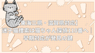【東海三県・滋賀県対応】迷子猫捜索は猫ちゃん探偵110番へ|早期対応が発見の鍵